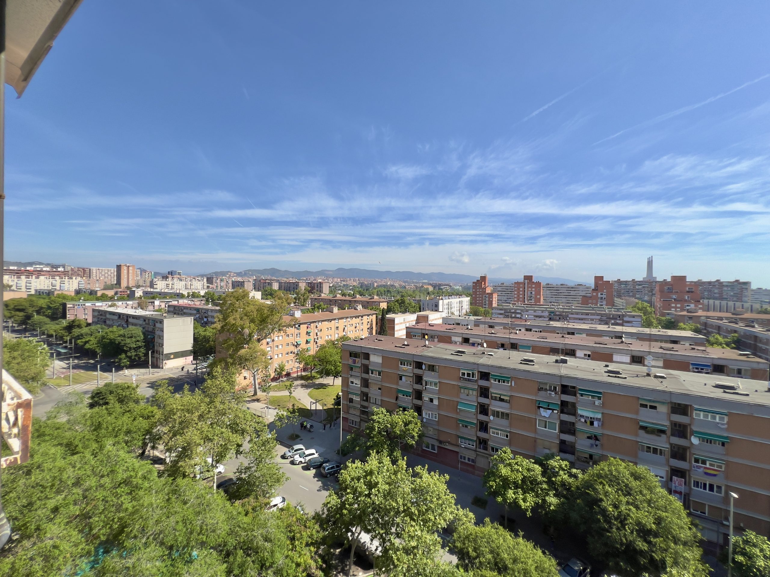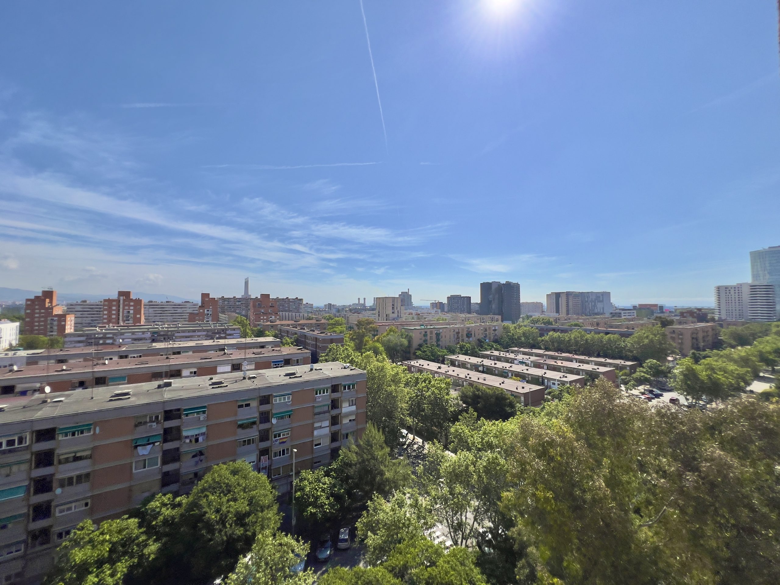 El espacioso salón se abre a un balcón con vistas a la majestuosa colina de Montjuïc, un lugar perfecto para relajarse al final del día. La cocina abierta, totalmente equipada, ofrece vistas panorámicas a la montaña, haciendo que cada comida sea un placer. El baño incluye un práctico plato de ducha, y el apartamento cuenta con aire acondicionado y calefacción para garantizar comodidad durante todo el año.